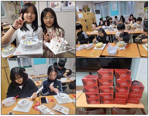 12월 23일 연말 및 크리스마스를 맞이하여 케이크 만들기 프로그램을 진행했습니다.