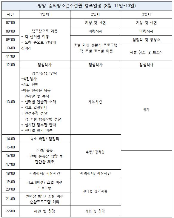 8월 11-13일 청양숭의청소년수련원