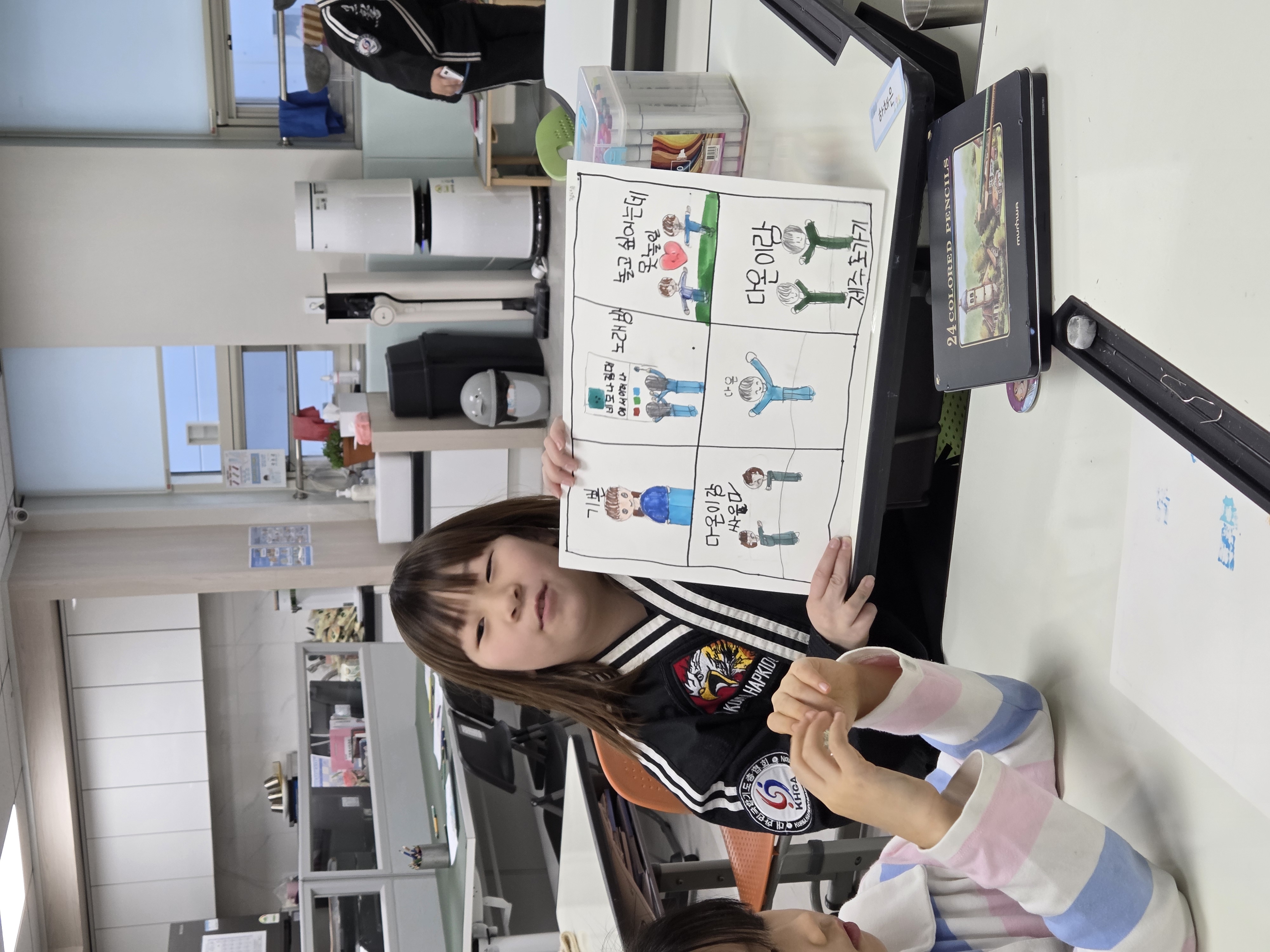 2026년 새롭게 시작하는 프로그램으로 미술치료 <감정표현놀이> 8회기를 진행합니다. 1회기 첫 시간에는 프로그램 소개와 정서인식 및 표현척도 사전검사를 진행하였습니다. 우리의 규칙도 정하고 6분할로 감정을 그려보고 나눔을 하는 시간을 가졌답니다. 1. 오늘의 감정 2. 나를 웃게한 것 3. 걱정되는 것 4. 슬펐던 순간 5. 나를 도와준 사람 6.지금하고 싶은 것 을 표현해 보았답니다. 기쁘고, 슬프고, 감사하고, 힘들고, 걱정되고 많은 감정들을 어떻게 하면 좋을지 물었더니 감정은 다스리는 것 이라고 대답했습니다. 각자 아이들이 감정을 다스리는 방법으로 쉼호흡하기 5초 숨쉬기, 혼자만의 시간 갖기 등을 답하였답니다. 감정표현놀이를 통해 미술이라는 매체로 감정을 표현하고 건강하게 다스릴 수 있는 아동이 되길 기대합니다.