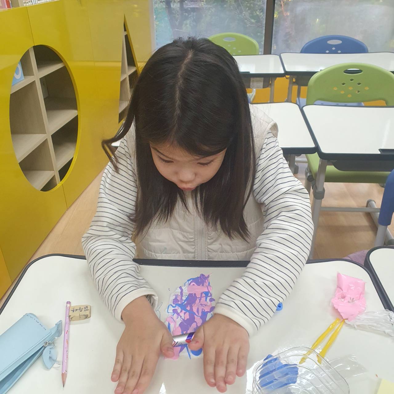 소금물로 그림도 그려보고 화석에 대해서도 알아보고 비행기가 뜨는 원리도 배워보고 큰 다리가 하중을 어떻게 견디는지도 배워보면서 여러가지 과학활동과 만들기를해보며 과학에 대한 원리를 배워가는 아동들 입니다. ^^